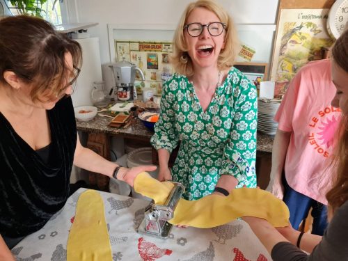 Eating the fruits of our pasta making labours.